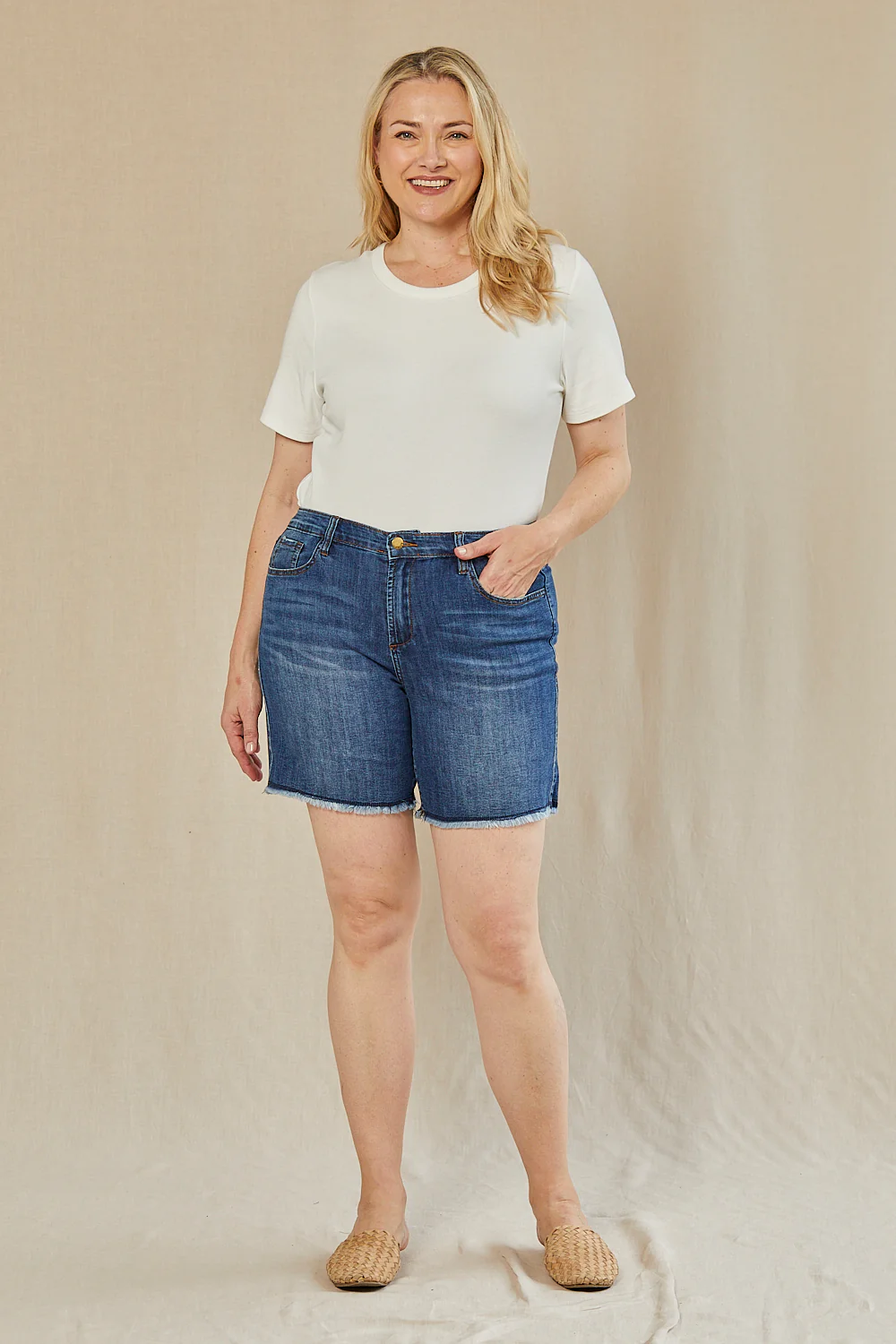 Adrift's classic Denim Cut Off Shorts are calling your name! These simple shorts were designed for everyday wear, simply tuck your favourite blouse or t-shirt into the front for a casual look! The cotton stretch fabric allows these shorts to remain comfortable.
